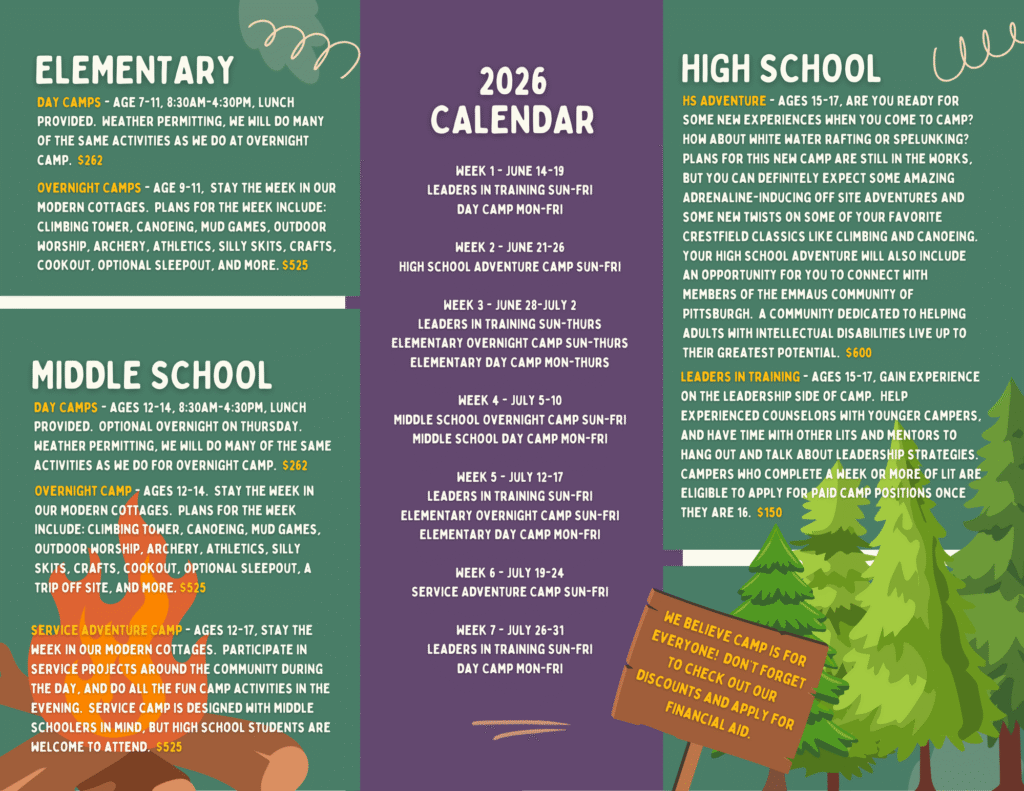 “Thank you for making these retreats possible. Here the kids can be themselves without walls. They love/need it, and Crestfield is one of the best places on earth.” -Adult Volunteer